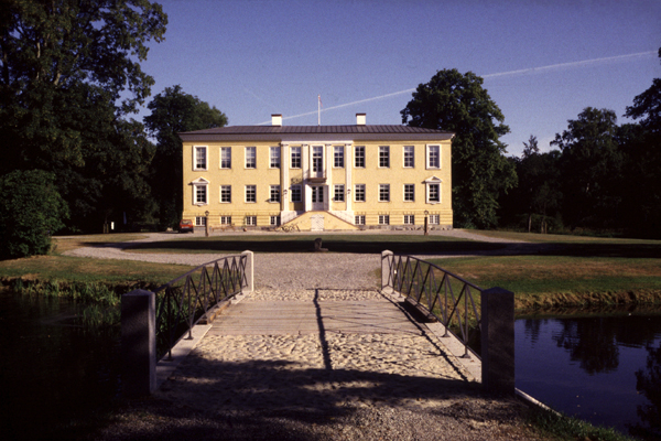Hovedbygningen er opført i 1799 i 2 stokværk i nyklassicistisk stil over høj kælder. Hovedbygningen står på en holm der strækker sig ud i en lille sø.