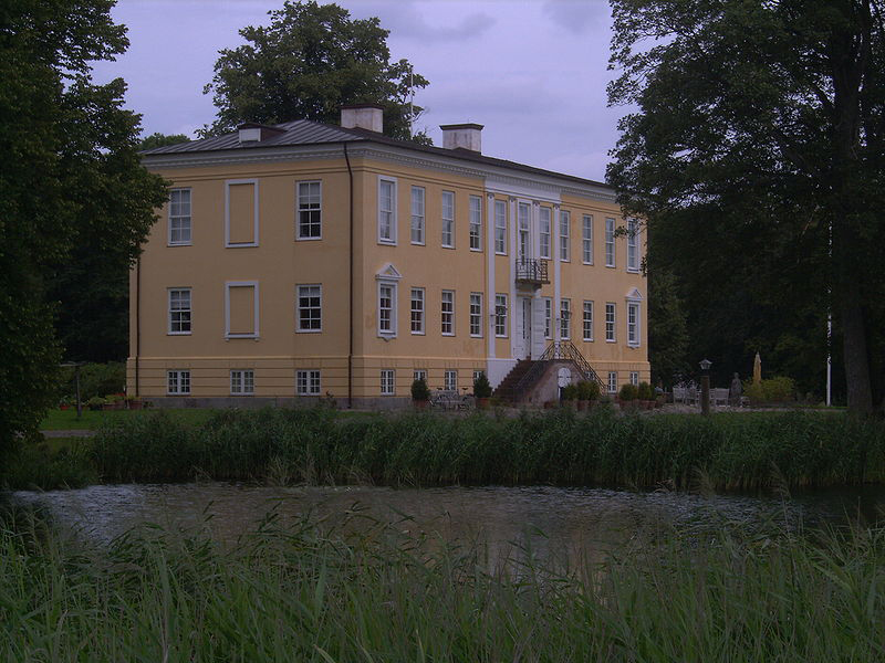 Hovedbygningen er opført i 1799 i 2 stokværk i nyklassicistisk stil over høj kælder. Hovedbygningen står på en holm der strækker sig ud i en lille sø.