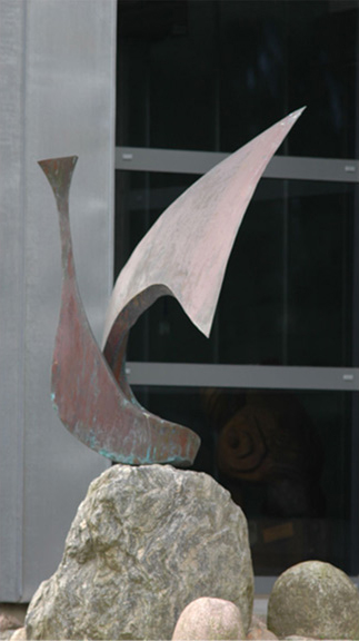 Skulpturen “dragen flyver” blev afsløret foran Glesborg Rådhus i januar 2002. Karl-Heinz Boserups skulptur i ren kobber er inspireret af “hjembækstenen”.