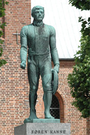 Statuen af Søren Kanne er rejst, fordi han den 15. februar 1835 trodsede stormen og havet, da han hørte skipperen fra et grundstødt skib råbe om hjælp. Da redningsbåden ikke kunne sejle ham ud til vraget, tog han sin fars heste og lod dem svømme ud til vraget.